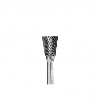 Lima rotativa cono invertido de carburo de tungsteno de 5/8" GROBET #32.76302 (SN6) sin corte en la punta, long. de corte 3/4", long. total 2-1/2", zanco 1/4", angulo 18°, para metales ferrosos