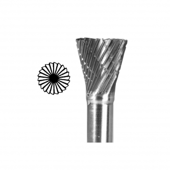 Lima rotativa cono invertido de carburo de tungsteno de 1/2" GROBET #32.771 (SN4) con corte en la punta, long. de corte 1/2", long. total 2-1/2", zanco 1/4", angulo 14°, para metales ferrosos